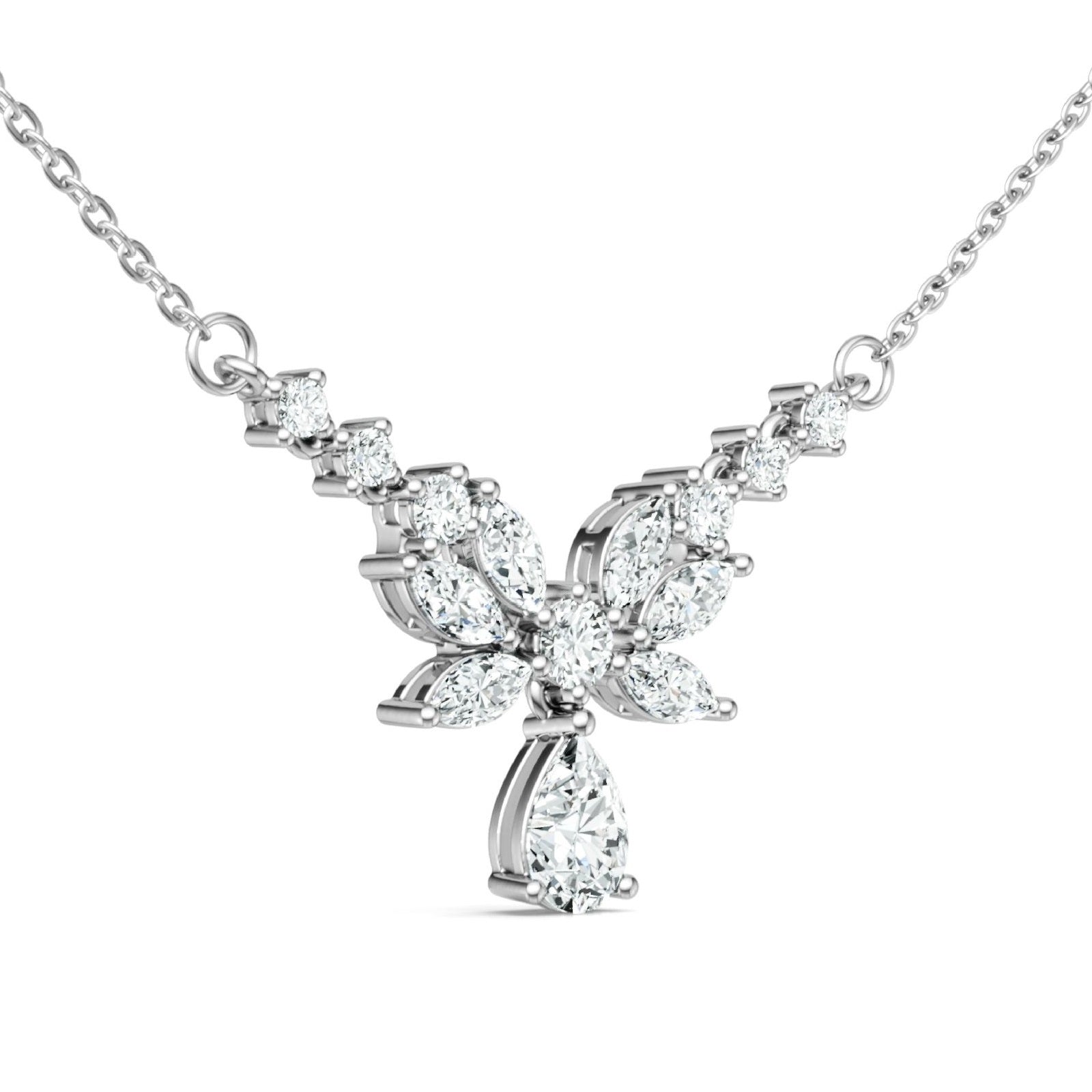 Crafted in the shape of a delicate leaf, this necklace blends natureâs beauty with luxury. The pear - cut (5*8mm) main moissanite sits at the center, surrounded by 13 shimmering accent stonesâcreating a âblossoming leafâ effect thatâs perfect for (layering) or standalone elegance.