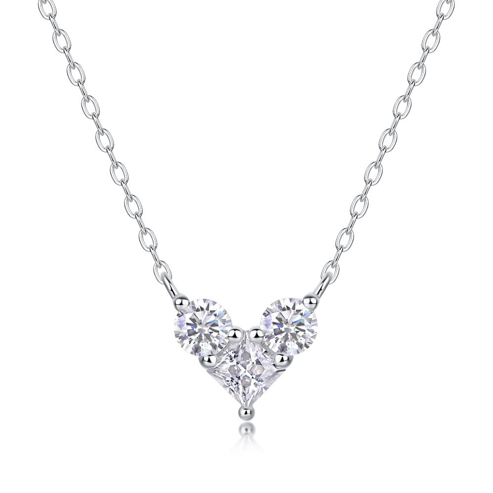 Three moissanites form a heartâtwo 0.3CT rounds and one 0.4CT square. This design symbolizes past, present, and future loveâa perfect gift for anniversaries, proposals, or âjust because.â